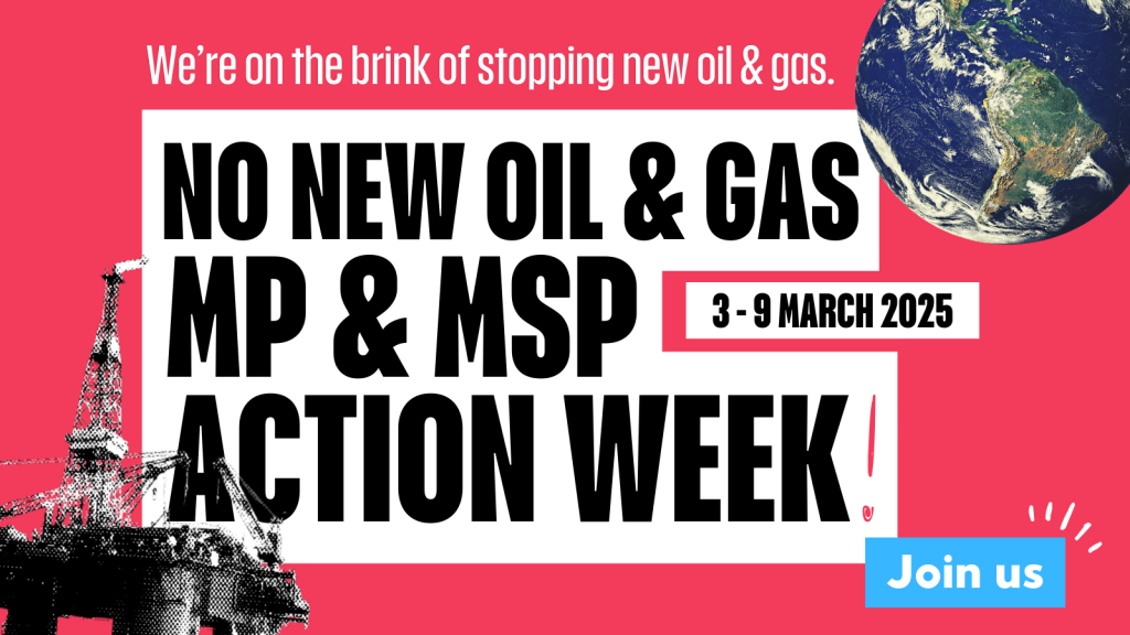 Now is the time to keep the pressure on to ensure that this victory leads to the lasting change we desperately need. Every MP needs to hear from their constituents that for a safe climate and affordable energy, we must stop new oil & gas now. There are really helpful tips and guidance about contacting your MP on the Stop Rosebank website. Don’t worry if you don’t have time to contact your MP this week – they still need to hear from you.